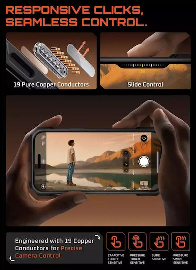 Διαθέτει αυξημένο χείλος γύρω από την κάμερα και την οθόνη και την προστατεύει από γρατσουνιές και ενδεχόμενες πτώσεις. Επιπλέον, διαθέτει καλύμματα για τα κουμπιά και εγκοπές για τις θύρες. Χάρη στους ενσωματωμένους μαγνήτες, είναι συμβατή με αξεσουάρ τεχνολογίας MagSafe. Ο ενσωματωμένος δακτύλιος MagSafe λειτουργεί, επίσης, ως βάση και λαβή, γεγονός που αυξάνει την άνεση στη χρήση της συσκευής.