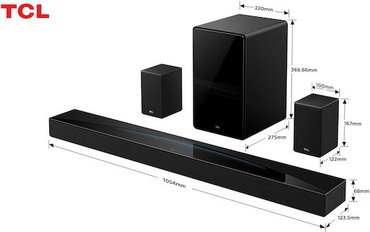 TCL Soundbar 7.1.4 Bluetooth, HDMI και Wi-Fi με Ασύρματο Subwoofer και Τηλεχειριστήριο Μαύρο Q85H