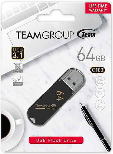 TeamGroup C183 64GB USB 3.1 Stick Μαύρο