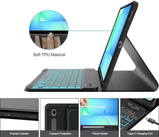 Tech-Protect SC PEN Flip Cover με Πληκτρολόγιο στα Αγγλικά US Μαύρη (Galaxy Tab S10 FE+ Plus X620/X626B)