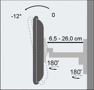 Η βάση τοίχου με βραχίονα της Techly μπορεί να χρησιμοποιηθεί για την τοποθέτηση τόσο μικρών τηλεοράσεων (από 19 Ίντσες), όσο και μεγαλύτερων, συγκεκριμένα μέχρι και 37 Ιντσών. Για το βίδωμα της τηλεόρασης υπάρχουν υποδοχές 4 διαφορετικών τύπων Vesa, μεταξύ των οποίων βρίσκονται και οι δημοφιλείς 200×200 και 100×100 (δείτε όλους τους συμβατούς τύπους στα Χαρακτηριστικά Συμβατότητας). Η δυνατότητα για κλίση σας επιτρέπει να την προσαρμόζετε πάνω – κάτω όπως θέλετε.