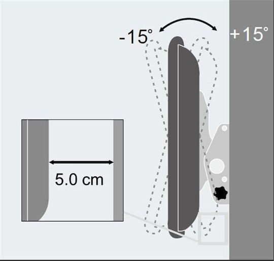 Προβολή βελτιστοποίησης με κλίση κατά ±15°. Απόσταση από τον τοίχο: 55 mm.