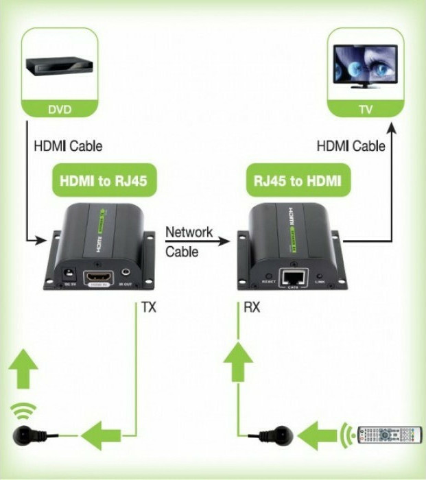 Το Techly IDATA EXT-E70I σας επιτρέπει να μεταδώσετε το HDTV σήμα σε μεγάλες αποστάσεις μέσω ενός Cat. 5e / 6 / 6A / 7 καλωδίου δικτύου. Χρησιμοποιώντας ένα καλώδιο δικτύου υψηλής ποιότητας από χαλκό μπορείτε να φτάσετε έως 60 μέτρα την απόσταση μετάδοσης με υψηλή ανάλυση βίντεο 1080p. Χάρη στην αυτόματη ρύθμιση, σας επιτρέπει να προσαρμόσετε τις ρυθμίσεις ανάλογα με το διαφορετικό μήκος καλωδίου από 1 έως 60 μέτρα για να έχετε την καλύτερη δυνατή προβολή. Αυτό το μοντέλο είναι εξοπλισμένο με υπέρυθρη IR τεχνολογία συγχρονισμού.