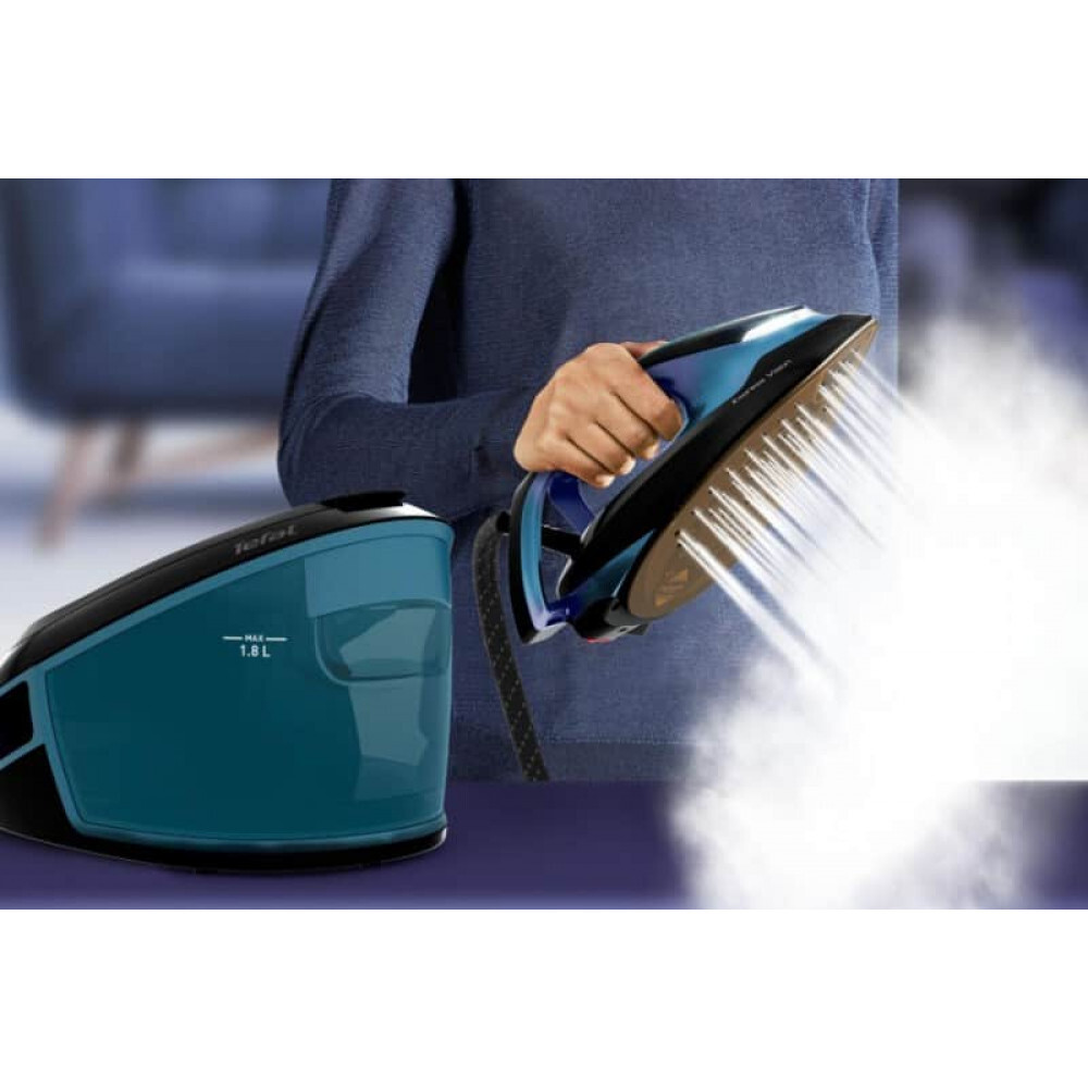 Το σύστημα σιδερώματος Tefal Express Vision με ισχύ 2.800 watt, 7 bar και παροχή ατμού 130 gr/min, παρέχει αρκετά πανίσχυρη εκτόξευση ατμού για όλες τις ανάγκες σιδερώματος, με βελτιωμένη τεχνολογία για καλύτερη εμπειρία φροντίδας των ρούχων μέρα με τη μέρα. Διαθέτει λυχνία LED στην άκρη του σίδερου για ευκολία κατά το σιδέρωμα, τεχνολογία υψηλής πίεσης, πλάκα Durilium AirGlide Autoclean, αφαιρούμενο δοχείο νερού, λειτουργία κάθετου ατμού, σύστημα κλειδώματος καθώς και anticalc φίλτρο.