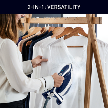 Μια 2 σε 1 λύση σιδερώματος και ατμού, για συνεχόμενο σιδέρωμα ή μικροδιορθώσεις της τελευταίας στιγμής για να δείχνετε υπέροχοι στη στιγμή, ιδίως εκείνα τα πρωινά μέσα στη βιασύνη.