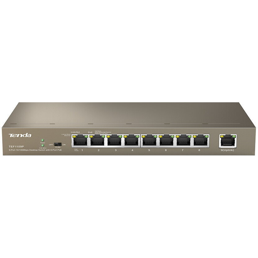 Ο Tenda TEF1109P-8-102W είναι ένα unmanaged L2 PoE+ switch που προσφέρει αξιόπιστες συνδέσεις για τις ανάγκες σας. Διαθέτει 9 θυρίδες Ethernet, παρέχοντας έτσι ικανότητες σύνδεσης για πολλαπλές συσκευές σε ένα δίκτυο.