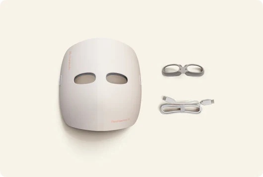 Μάσκα φωτοθεραπείας με φωτισμό LED και υπέρυθρες, η οποία συμβάλλει στην αύξηση της ροής του αίματος στην περιοχή χρήσης της και στην ενίσχυση της παραγωγής κολλαγόνου.