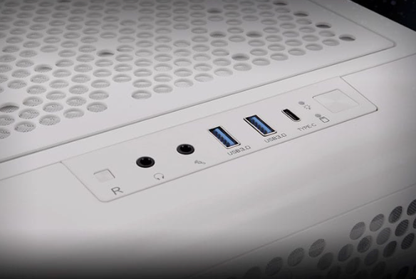 Δύο θύρες USB 3.0, μία θύρα USB 3.2 Gen 2 Type C και HD Audio είναι τοποθετημένες στο επάνω μέρος της πρόσοψης για άμεση πρόσβαση όταν χρειάζεται.
