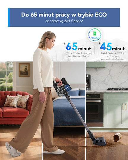 Η σκούπα TINECO Pure One S30 είναι μία αξιόπιστη συσκευή, ιδανική για καθημερινό καθάρισμα στο σπίτι. Χάρη στη χρήση επαναφορτιζόμενων μπαταριών λιθίου, η σκούπα είναι χωρίς καλώδιο και ιδιαίτερα αποδοτική. Παρέχει μέγιστη αυτονομία έως 65 λεπτά, με λειτουργία Turbo που προσφέρει ακόμη μεγαλύτερη δύναμη για έως 20 λεπτά. Ο χρόνος φόρτισης είναι σύντομος, μόλις 5 ώρες.