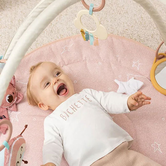 Εκπαιδευτικό γυμναστήριο της εταιρείας Tiny Love σε ροζ χρώμα με ζωάκια στο σχέδιο. Είναι κατασκευασμένο από 100% polyester.