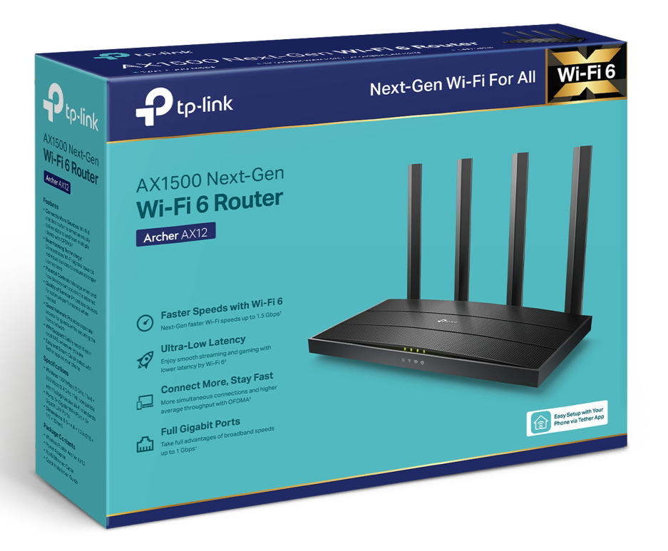Το Router Archer AX12 απευθύνεται σε οικιακούς χρήστες και μικρές επιχειρήσεις που χρειάζονται αξιόπιστη ασύρματη σύνδεση στο διαδίκτυο. Προσφέρει ταχύτητες μεταφοράς δεδομένων έως 1500Mbps και είναι συμβατός με τα πρωτόκολλα IEEE 802.11ax/ac/n/a στα 5 GHz και IEEE 802.11n/b/g στα 2.4 GHz. Διαθέτει έξυπνη τεχνολογία ανίχνευσης κίνησης για να βελτιστοποιεί την ασύρματη σύνδεση στο σπίτι ή στο γραφείο.