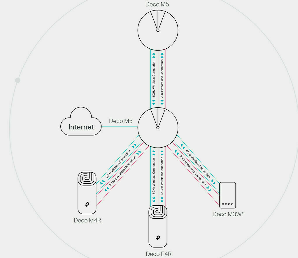 Το Deco M5 είναι συμβατό με άλλα μοντέλα Deco για τη δημιουργία δικτύου Mesh. Αναπτύξτε την κάλυψη Mesh Wi-Fi ανά πάσα στιγμή, προσθέτοντας απλώς περισσότερα Decos.