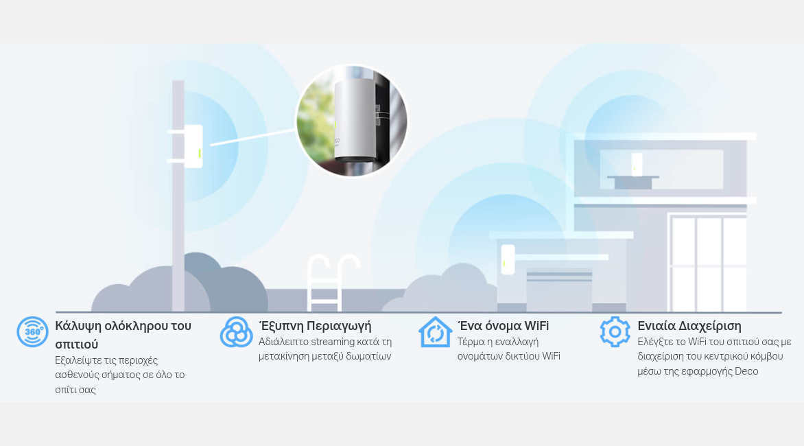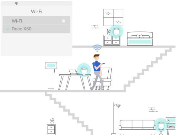 Το TP-Link Mesh σημαίνει ότι οι μονάδες Deco συνεργάζονται για να σχηματίσουν ένα ενοποιημένο δίκτυο. Το τηλέφωνο ή το tablet σου συνδέεται αυτόματα με το πιο γρήγορο Deco καθώς μετακινείσαι μέσα στο σπίτι σου, δημιουργώντας μια πραγματικά απρόσκοπτη εμπειρία WiFi