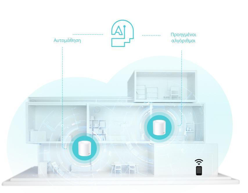 Οπλισμένο με AI-Driven Mesh, το Deco X50 προσφέρει έξυπνο WiFi που σας ακολουθεί όπου κι αν βρίσκεστε, χωρίς διακοπές. Μαθαίνει αυτόματα το περιβάλλον του δικτύου σας, την ποιότητα του πελάτη και τις συμπεριφορές των χρηστών. Οι εξελιγμένοι αλγόριθμοι λαμβάνουν υπόψη διάφορους παράγοντες, έτσι ώστε το Deco X50 να παρέχει ιδανικό δικτυωτό WiFi, μοναδικό στο σπίτι σας. Περπατήστε στο σπίτι σας και απολαύστε απρόσκοπτη ροή με τις μεγαλύτερες δυνατές ταχύτητες.
