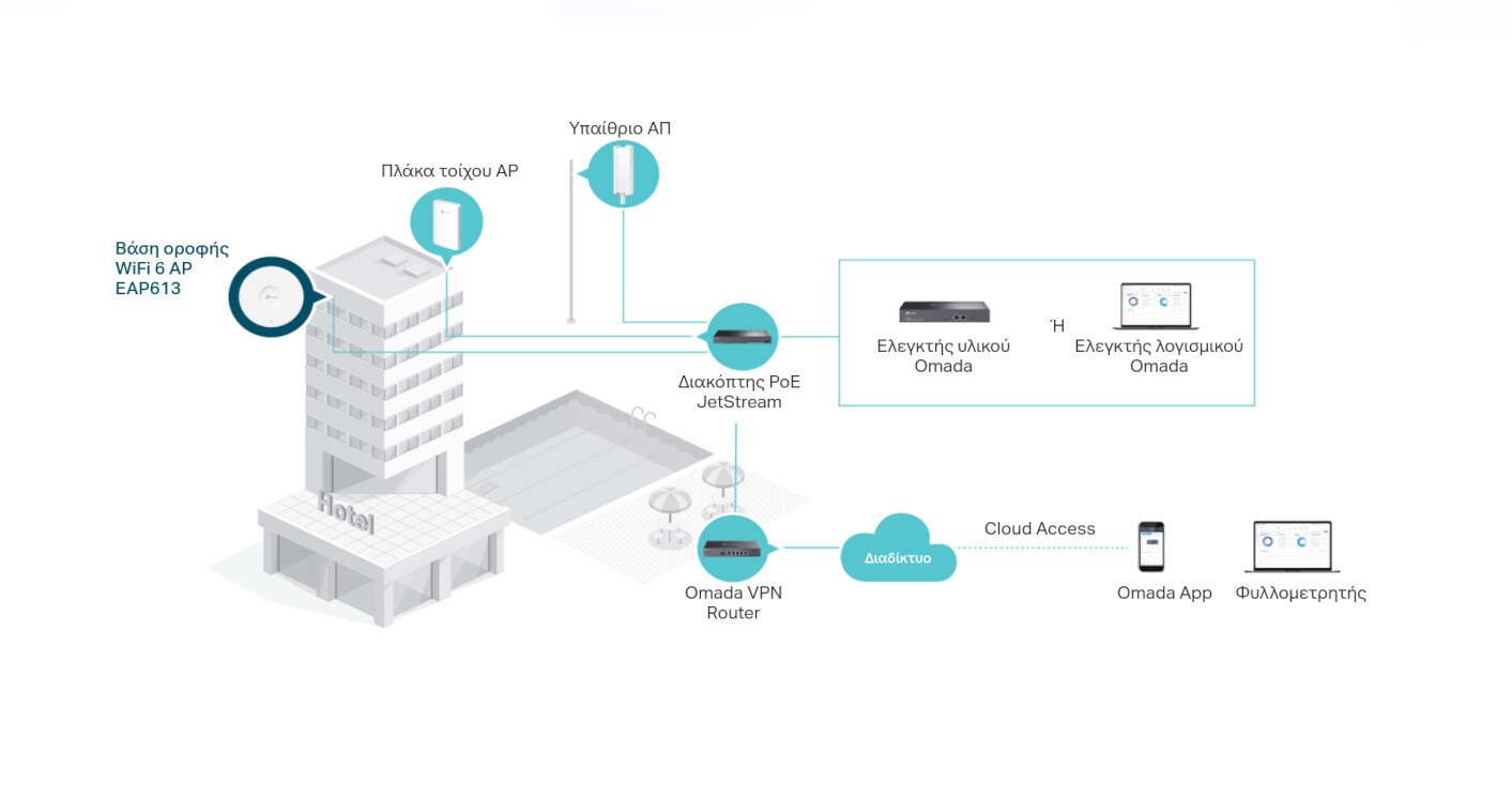 Η πλατφόρμα Omada Software Defined Networking (SDN) ενσωματώνει συσκευές δικτύου, συμπεριλαμβανομένων σημείων πρόσβασης, μεταγωγέων και δρομολογητών. Παρέχει 100% κεντρική διαχείριση cloud και δημιουργεί ένα δίκτυο υψηλής κλιμάκωσης που ελέγχεται από μια ενιαία διεπαφή.