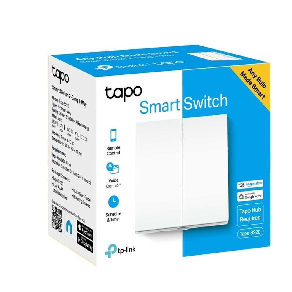 TP-LINK Tapo S220 v1 Χωνευτός Διακόπτης Τοίχου Φωτισμού Διπλός χωρίς Πλαίσιο Λευκός TAPO S220