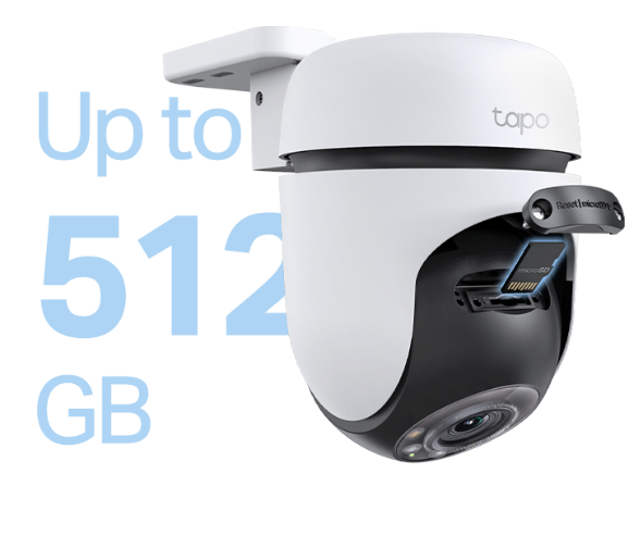 Αποθηκεύστε καταγεγραμμένα βίντεο σε κάρτα microSD (έως 512 GB) ή χρησιμοποιώντας την υπηρεσία cloud Tapo Care.