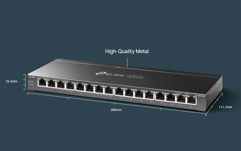 Τα εσωτερικά εξαρτήματα του TL-SG116P προστατεύονται από υψηλής ποιότητας μεταλλικό περίβλημα για να εξασφαλίσουν μεγάλη διάρκεια ζωής του προϊόντος. Έχοντας περάσει μια σειρά από αυστηρές δοκιμές αξιοπιστίας, το TL-SG116P προσφέρει επιδόσεις μεταγωγής στις οποίες μπορείτε να βασιστείτε.