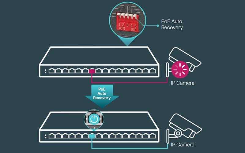 Ο διακόπτης εντοπίζει αυτόματα και επανεκκινεί τις συσκευές PD, όπως κάμερες και AP, όταν πέφτουν εκτός σύνδεσης ή δεν ανταποκρίνονται, διασφαλίζοντας τη σταθερή λειτουργία των συσκευών που είναι συνδεδεμένες με PoE, χωρίς να απαιτείται μη αυτόματη παρακολούθηση και επανεκκίνηση.