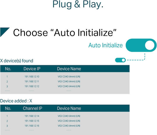 - Plug & Play: Επιτρέπει την αυτόματη προσθήκη νέων VIGI IP καμερών στο NVR και την άμεση ενεργοποίηση τους, κάνοντας την εγκατάσταση πιο γρήγορη από ποτέ.