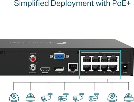 TP-LINK VIGI v1 Καταγραφικό NVR 8 Καναλιών με Ανάλυση Full HD+