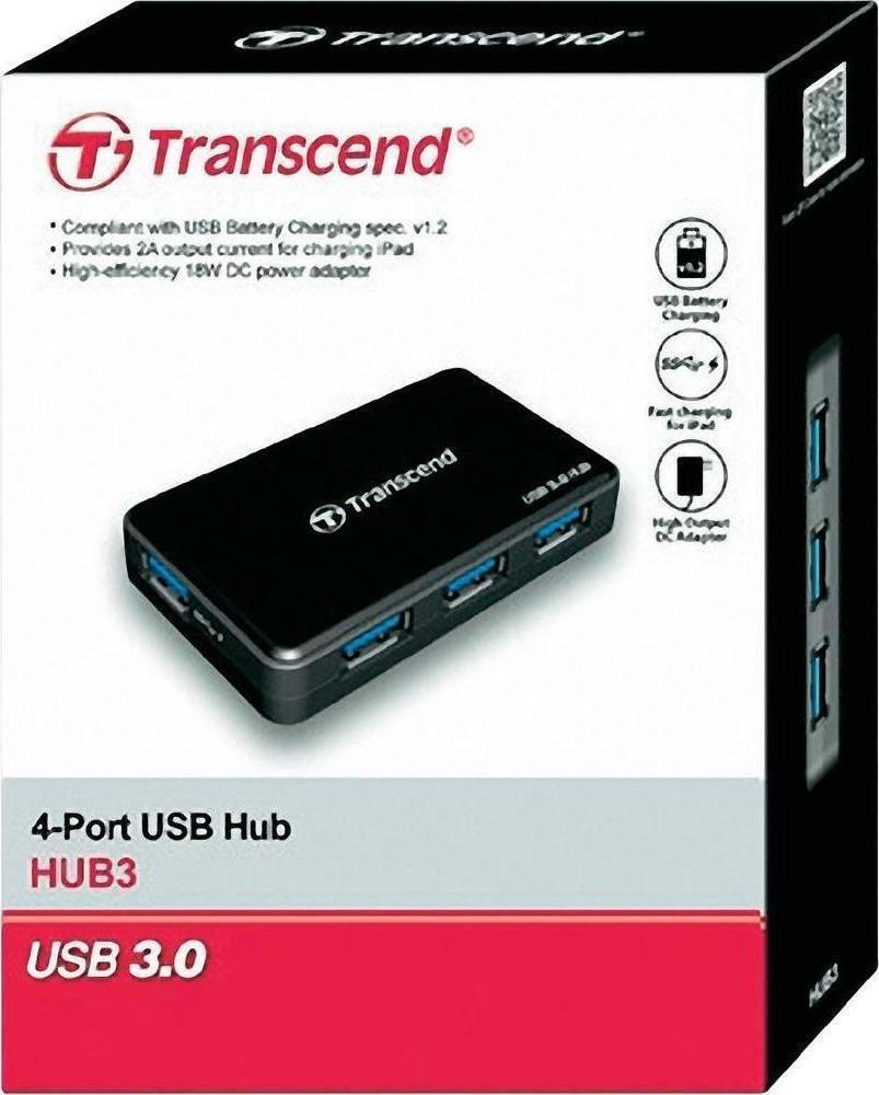 Transcend HUB3 USB 3.0 Hub 4 Θυρών με σύνδεση USB-A και Εξωτερική Παροχή Ρεύματος