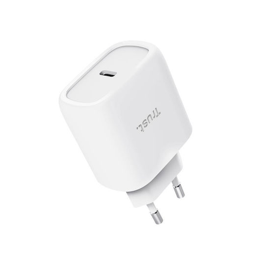 Trust Φορτιστής Χωρίς Καλώδιο GaN με Θύρα USB-C και Καλώδιο USB-C – USB-C 45W Λευκός (Maxo)