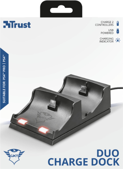 Trust GXT 235 Duo Charging Dock Βάση Φόρτισης για 2 χειριστήρια PS4 Μαύρη
