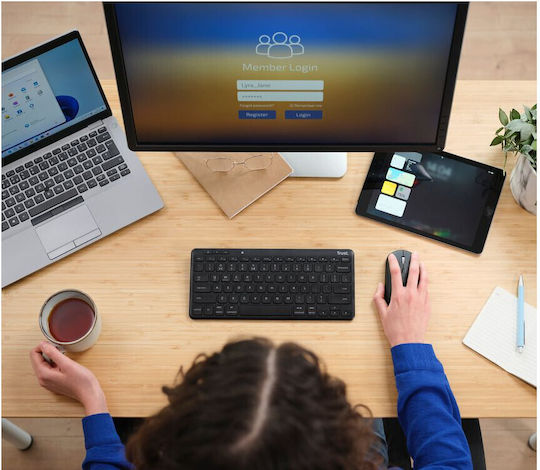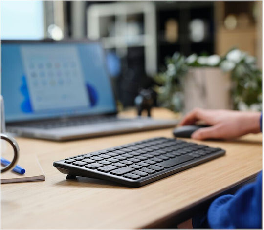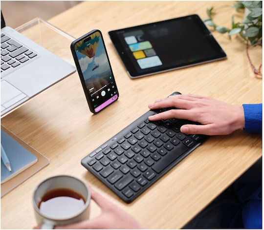 Συμπαγές, ασύρματο πληκτρολόγιο πολλαπλών συσκευών που παρέχει εύκολη και βολική σύνδεση- κατασκευασμένο από ανακυκλωμένα υλικά.