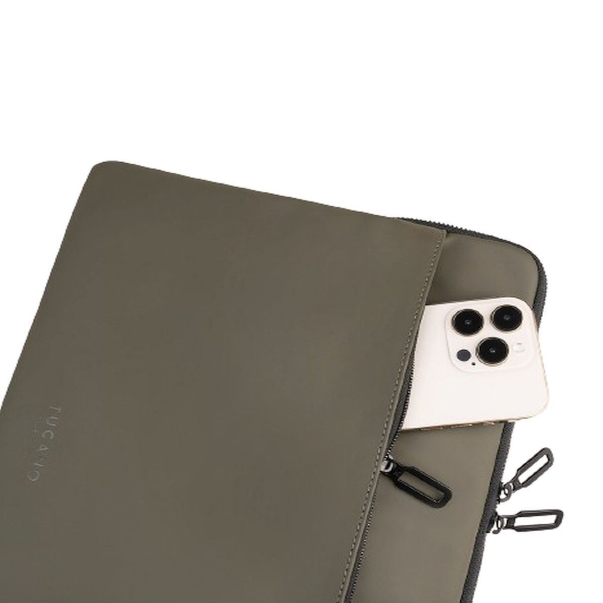 Αδιάβροχη θήκη από καουτσούκ για φορητό υπολογιστή 14″ και MacBook Air 15″. Εξοπλισμένη με ένα ενιαίο διαμέρισμα με επένδυση, η θήκη Gommo διαθέτει μια βολική εξωτερική τσέπη για αξεσουάρ.