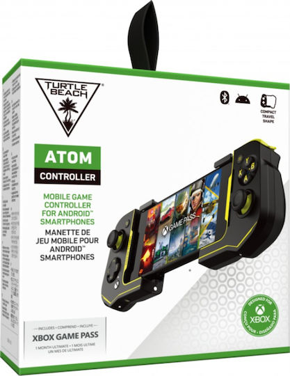 Ο ελεγκτής παιχνιδιών Turtle Beach® Atom Mobile είναι επίσημα αδειοδοτημένος από την Xbox και έχει σχεδιαστεί για καθηλωτικό cloud gaming σε smartphones Android. Ο Atom συνδέεται μαγνητικά και χωρίζεται σε δύο ξεχωριστά μοντέλα που συνδέονται μέσω 2.4GHz ασύρματης σύνδεσης όταν είναι ώρα να παίξετε. Μια σύνδεση Bluetooth® χαμηλής καθυστέρησης εξασφαλίζει αξιόπιστη σύνδεση, και μπορείτε να κρατήσετε το τηλέφωνό σας στη θήκη του χάρη στον ευέλικτο σχεδιασμό δύο τμημάτων του Atom και στα ρυθμιζόμενα κλιπ smartphone. Οι έλεγχοι στυλ κονσόλας προσφέρουν μια γνώριμη αίσθηση στα παιχνίδια κινητού, ενώ το εργονομικό σχήμα κρατά τα χέρια σας άνετα για ώρες. Η διαρκεια της μπαταρίας είναι 20 ώρες και η φόρτιση ολοκληρώνεται γρήγορα σε 2.5 ώρες.