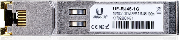 Το UF-RJ45-1G είναι ένα μεταλλικό module Gigabit SFP με υποδοχή RJ45 για μεταλλικό καλώδιο με ρυθμό μετάδοσης δεδομένων 10/100/1000 Mbps. Η εμβέλεια είναι έως 100 μέτρα. Η μονάδα έχει σχεδιαστεί κυρίως για διακόπτες UniFi όπου θέλετε να αυξήσετε τον αριθμό των μεταλλικών θυρών. Η μονάδα είναι συμβατή μόνο με προϊόντα Ubiquiti Networks UniFi.