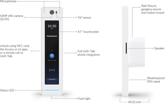 Ανεξάρτητα από το αν θα ενσωματωθεί σε υπάρχον δίκτυο Ubiquiti ή αν θα ρυθμιστεί ένα νέο σύστημα ελέγχου πρόσβασης, αυτή η συσκευή προσφέρει απρόσκοπτη συνδεσιμότητα με την υποστήριξή της για Ethernet, Fast Ethernet, Gigabit Ethernet, Bluetooth 4.2, NFC και Mifare πρωτόκολλα.