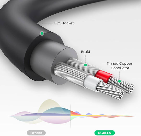 Ugreen Καλώδιο 3.5mm male – 2x RCA male Γκρι 0.25m (10547)