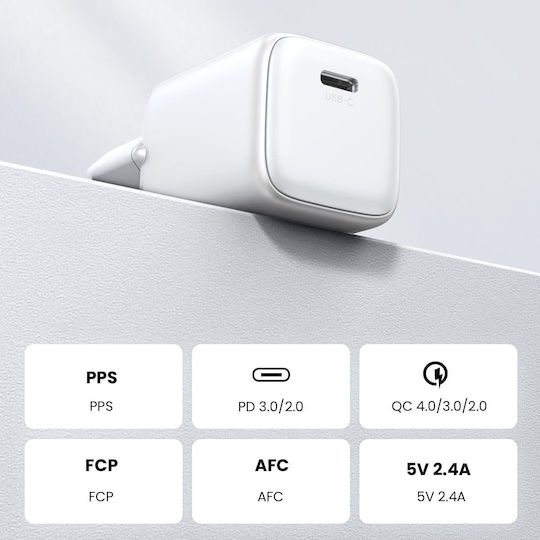 Ugreen Φορτιστής Χωρίς Καλώδιο GaN με Θύρα USB-C 30W Power Delivery Λευκός (Nexode Mini)