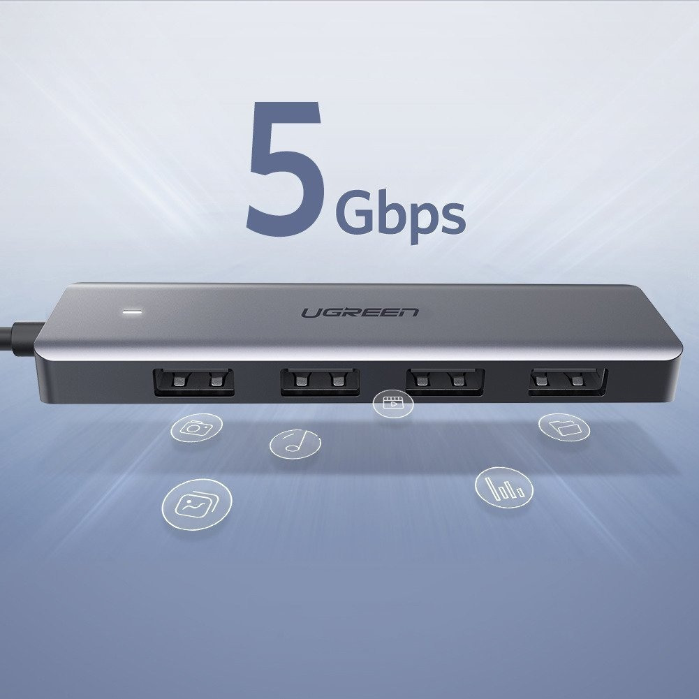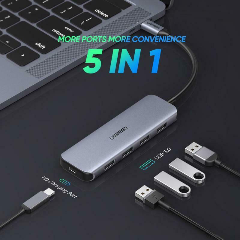 Ugreen CM219 USB 3.0 Hub 5 Θυρών με σύνδεση USB-C Γκρι