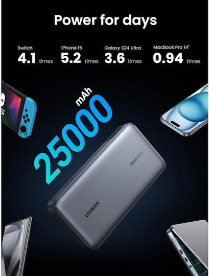 Ugreen PB205 Power Bank 25000mAh 145W με Θύρα USB-A και 2 Θύρες USB-C Power Delivery / Quick Charge 3.0 Γκρι
