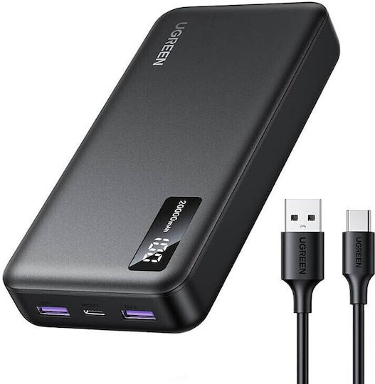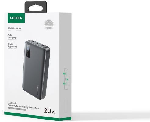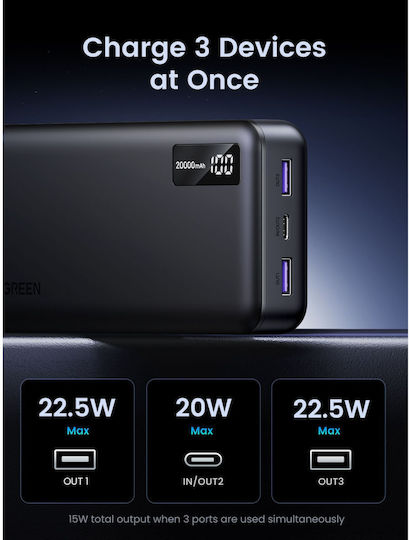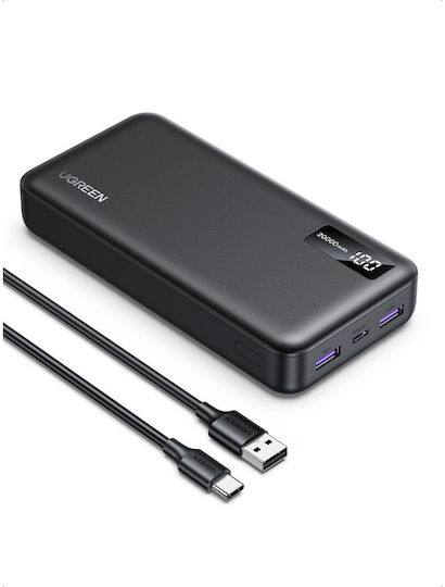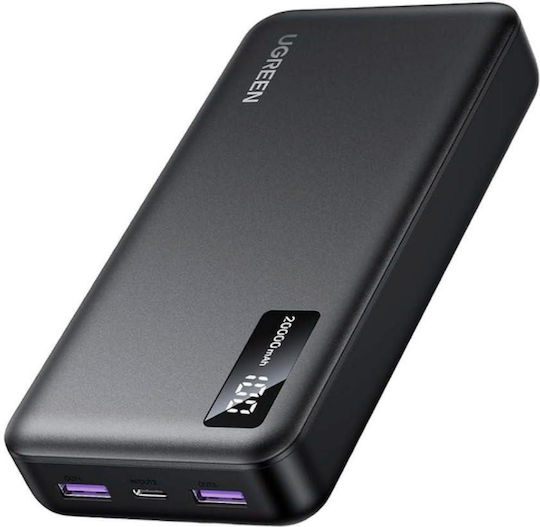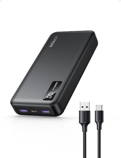 Ugreen PB312 Power Bank 20000mAh 20W με 2 Θύρες USB-A και Θύρα USB-C Μαύρο