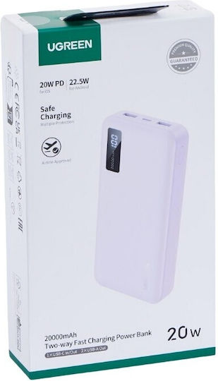 Ugreen PB312 Power Bank 20000mAh 20W με 2 Θύρες USB-A και Θύρα USB-C Power Delivery Μωβ