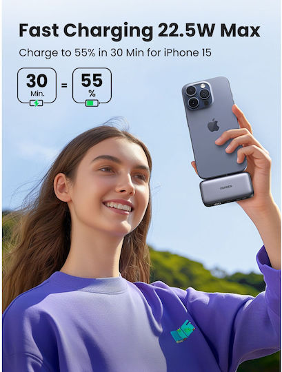 Το power bank UGREEN 5000mAh 20W PD PB503 35338 προσφέρει αξιόπιστη και γρήγορη φόρτιση σε όλες τις συσκευές με θύρα USB-C.
