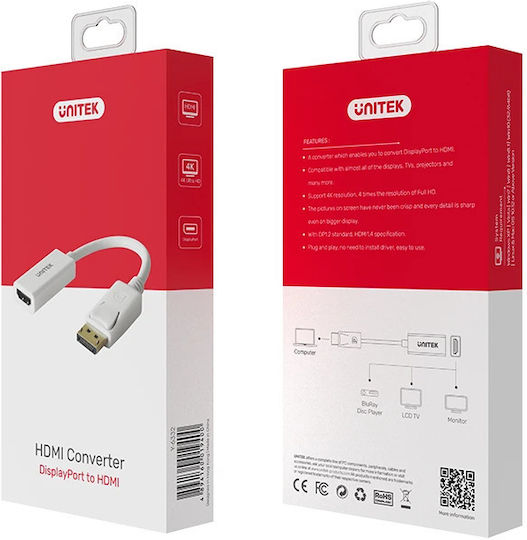 Unitek Μετατροπέας DisplayPort male σε HDMI female Λευκό 1τμχ Y-6332