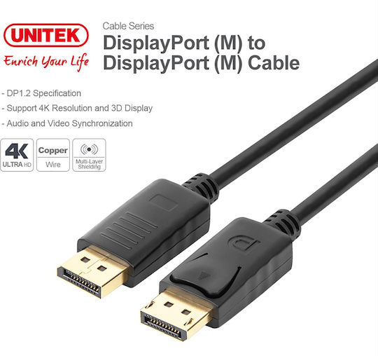 Unitek Cable DisplayPort male – DisplayPort male 1.5m Μαύρο (Y-C607BK)