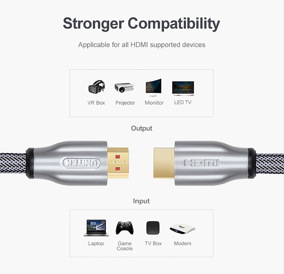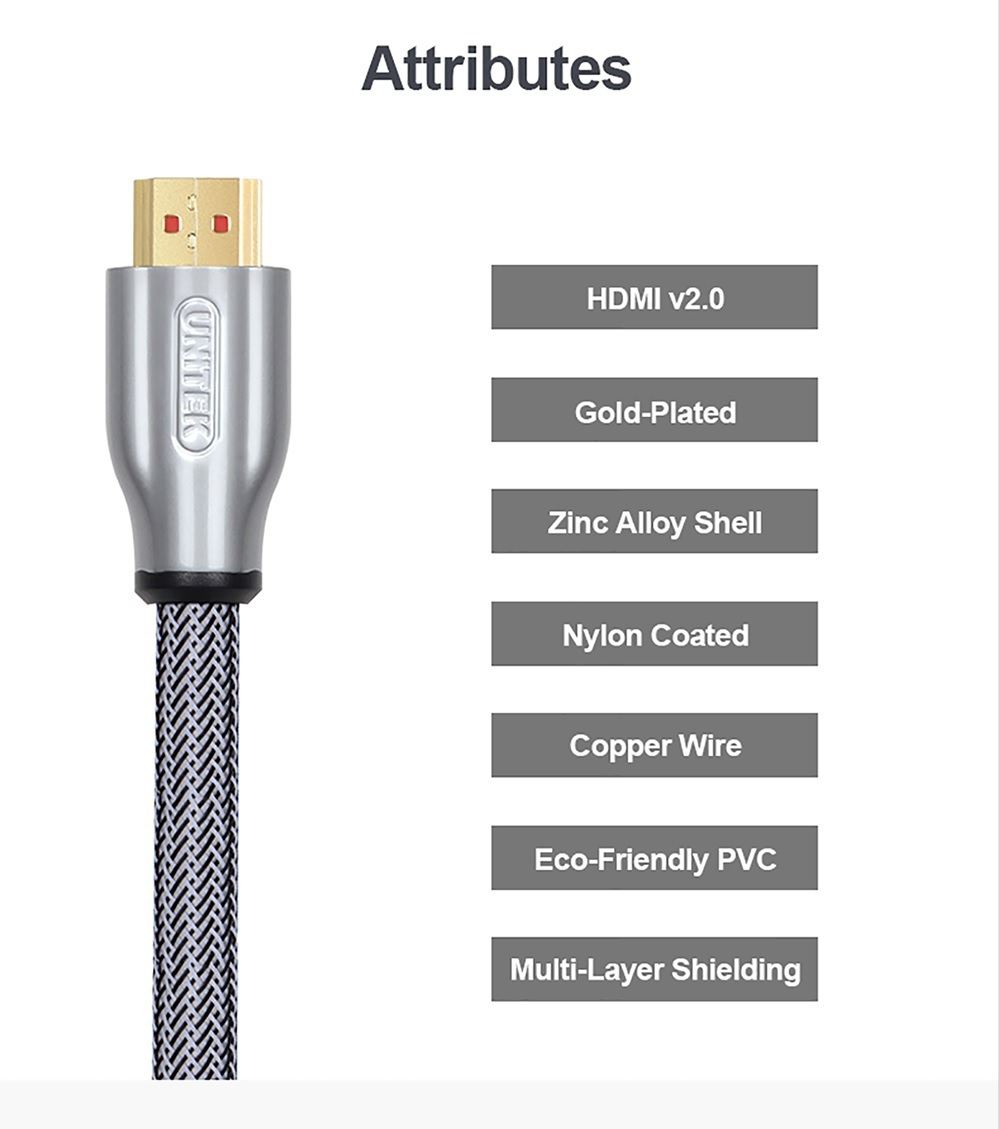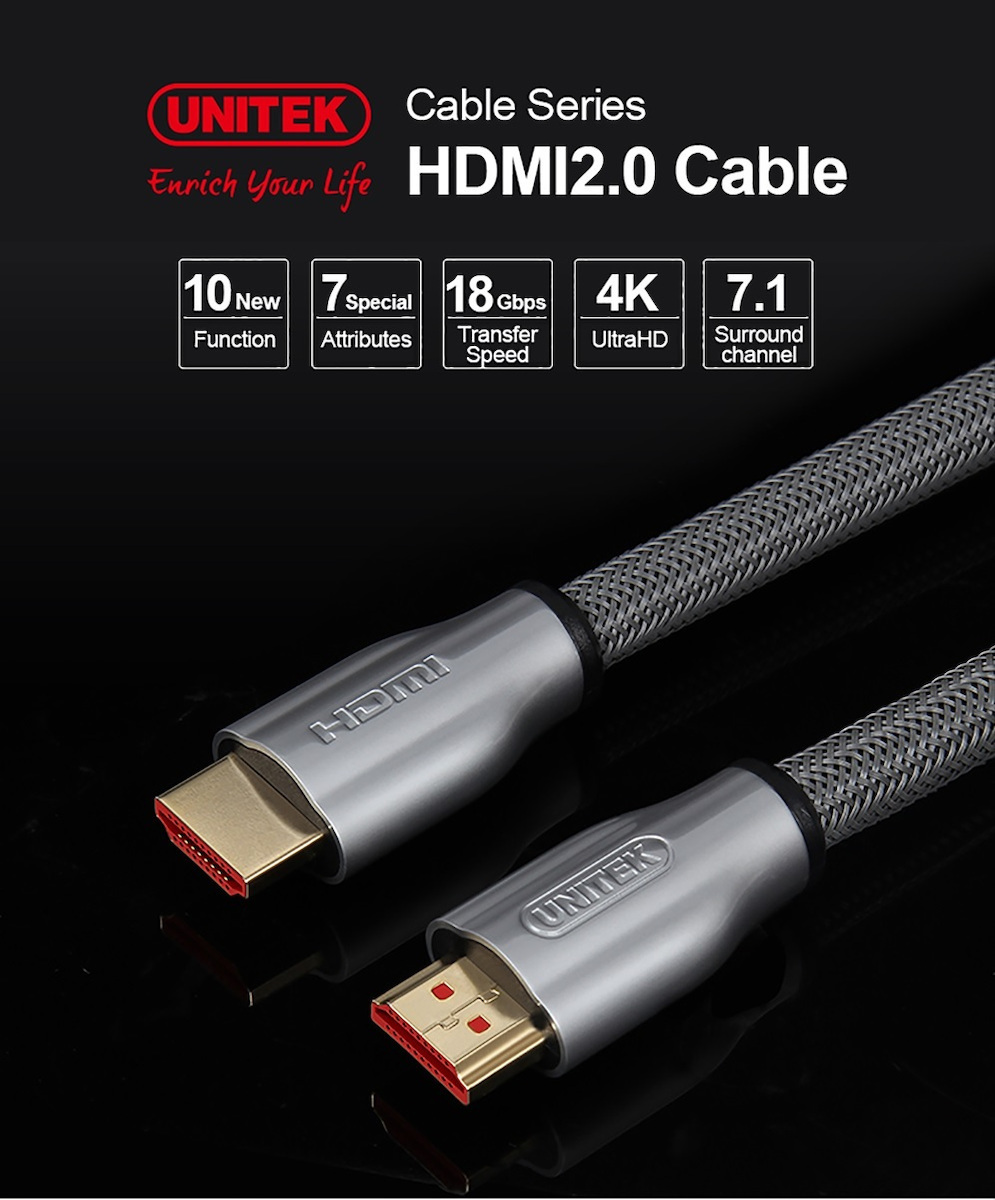 Unitek HDMI 2.0 Braided HDMI male – HDMI male 1m Γκρι (Y-C136RGY)