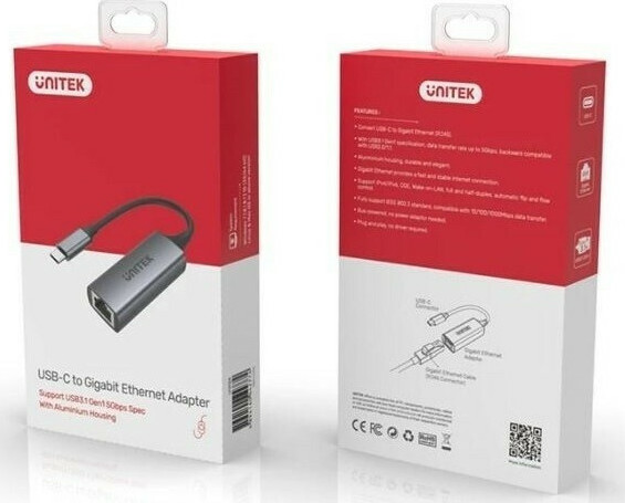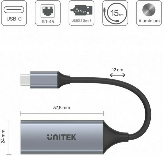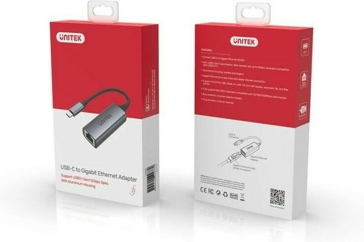Unitek U1312A USB-C Αντάπτορας Δικτύου για Ενσύρματη σύνδεση Gigabit Ethernet