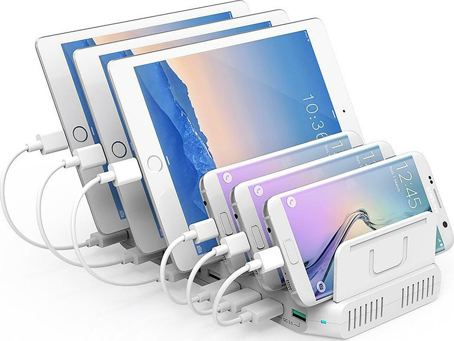 - Φορτίζει ταυτόχρονα έως και 10 συσκευές που τροφοδοτούνται με USB, ειδικά υποστηρίζει 8 iPad ταυτόχρονα.