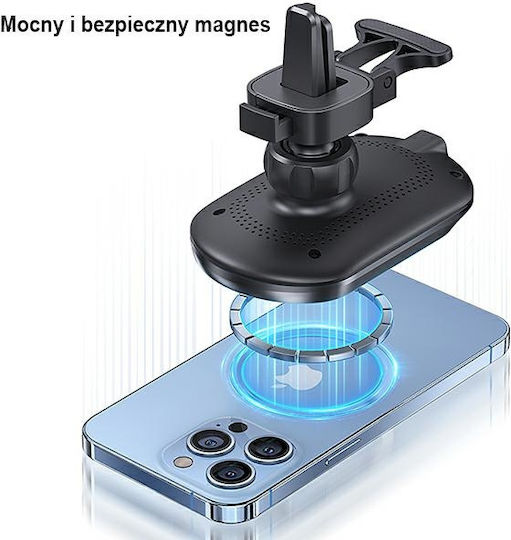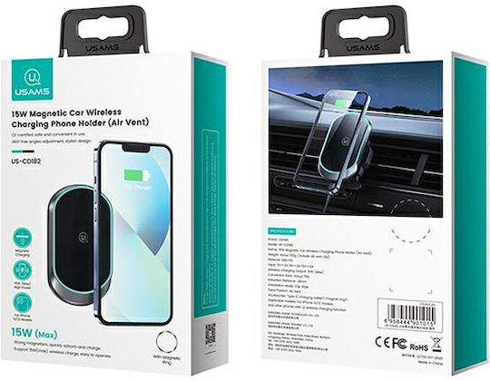 USAMS Στήριγμα αυτοκινήτου με ασύρματη φόρτιση 15W, εξοπλισμένο με ισχυρό μαγνήτη. Προσφέρει ασύρματη φόρτιση συμβατή με iPhone 13/12. Ο ισχυρός μαγνήτης υποστηρίζει τη φόρτιση έως 1,5 kg και εξασφαλίζει σταθερότητα σε περιπτώσεις απότομων φρεναρισμάτων ή κατά τη διάρκεια ανώμαλων διαδρομών.