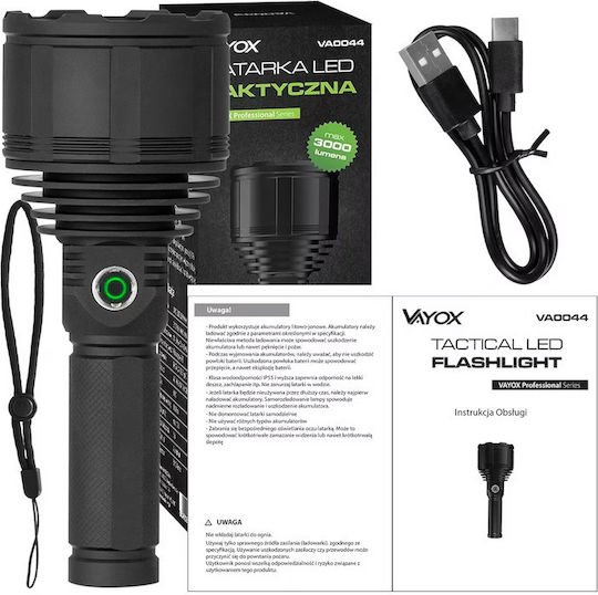 Vayox Pro Φακός LED με Μέγιστη Φωτεινότητα 3000lm VA0044