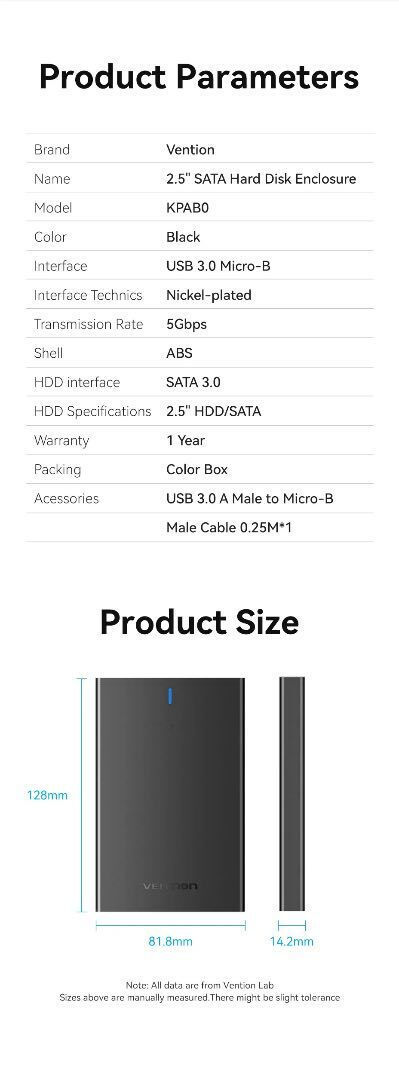 Vention Θήκη για Σκληρό Δίσκο 2.5″ SATA III με σύνδεση USB 3.0 KPAB0