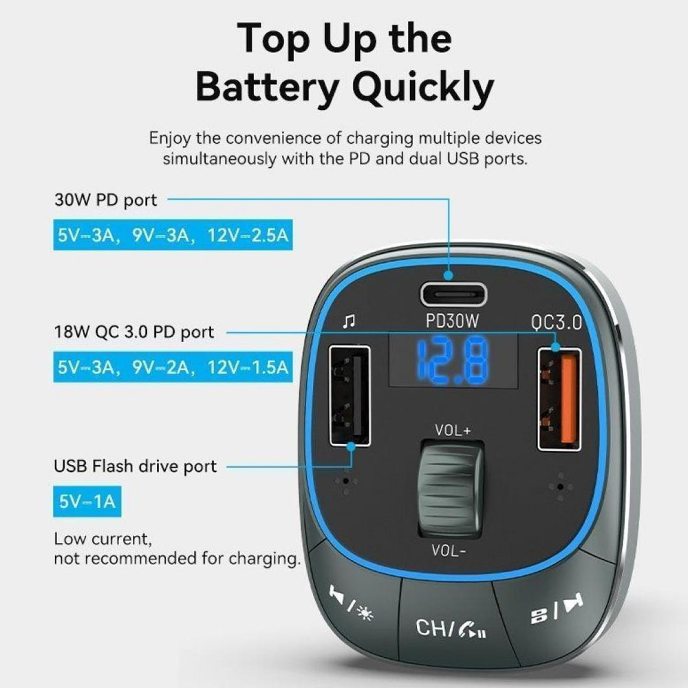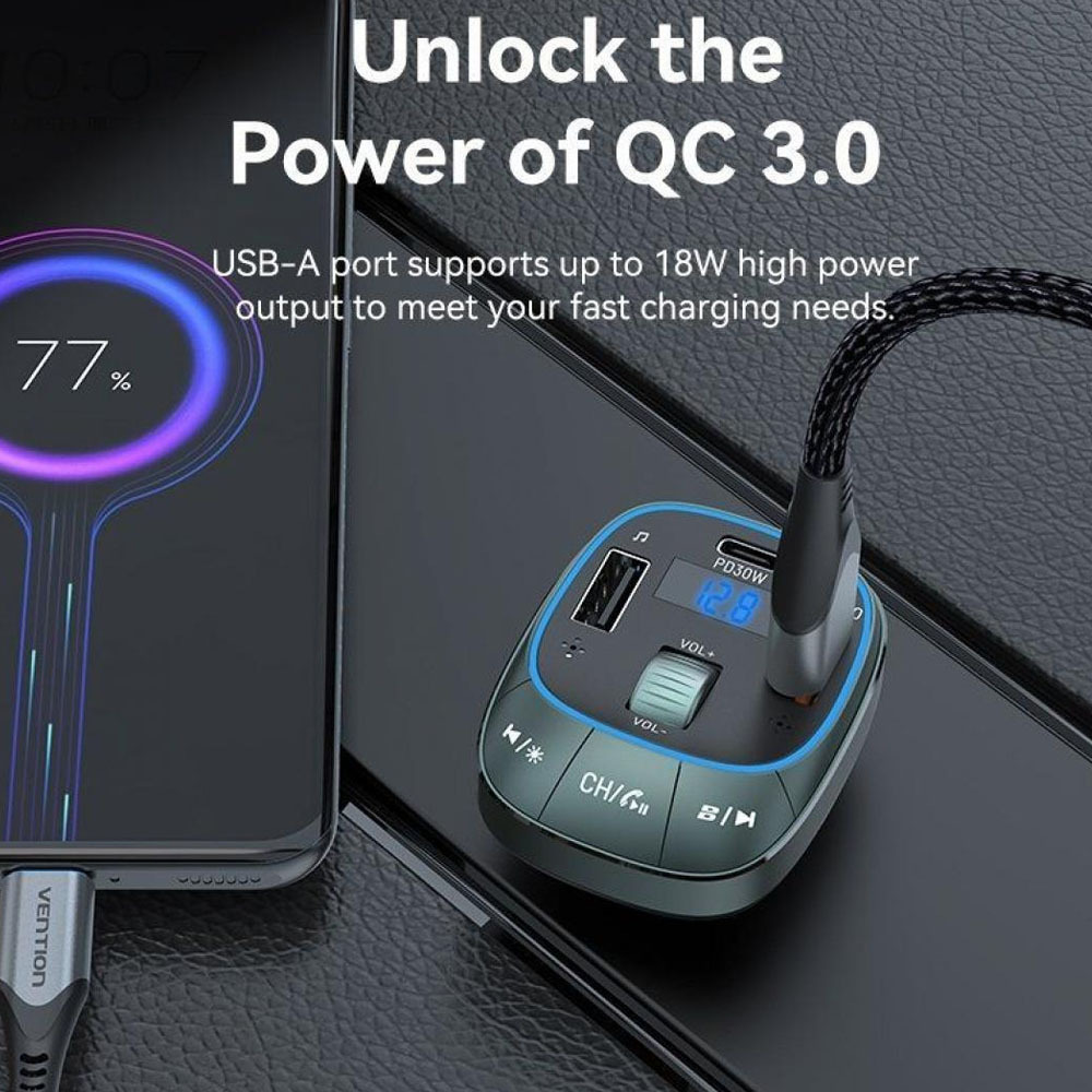 Ο φορτιστής αυτοκινήτου VENTION 3-Port USB με FM Transmitter, μοντέλο FFLB0, είναι μια λειτουργική και τεχνολογικά προηγμένη συσκευή σχεδιασμένη για να βελτιώνει την εμπειρία σας κατά την οδήγηση. Με τις πολυλειτουργικές δυνατότητές του, αυτός ο φορτιστής αυτοκινήτου προσφέρει ισχυρή φόρτιση, απρόσκοπτη μετάδοση ήχου και μια σειρά από βολικές δυνατότητες.