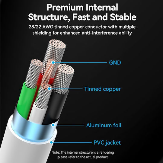 Καλώδιο Vention USB-A 2.0 male σε Micro USB-B male με μήκος 1 m.